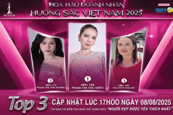 DSDN – Chỉ sau hai ngày mở cổng bình chọn, bảng xếp hạng “Người đẹp được yêu thích nhất” của Hoa hậu Doanh nhân Hương sắc Việt Nam 2025 đã liên tục “dậy sóng” với những màn bứt phá ngoạn mục. 17h00 ngày 09/8, kết quả tạm thời top 3 được công bố khiến cộng…