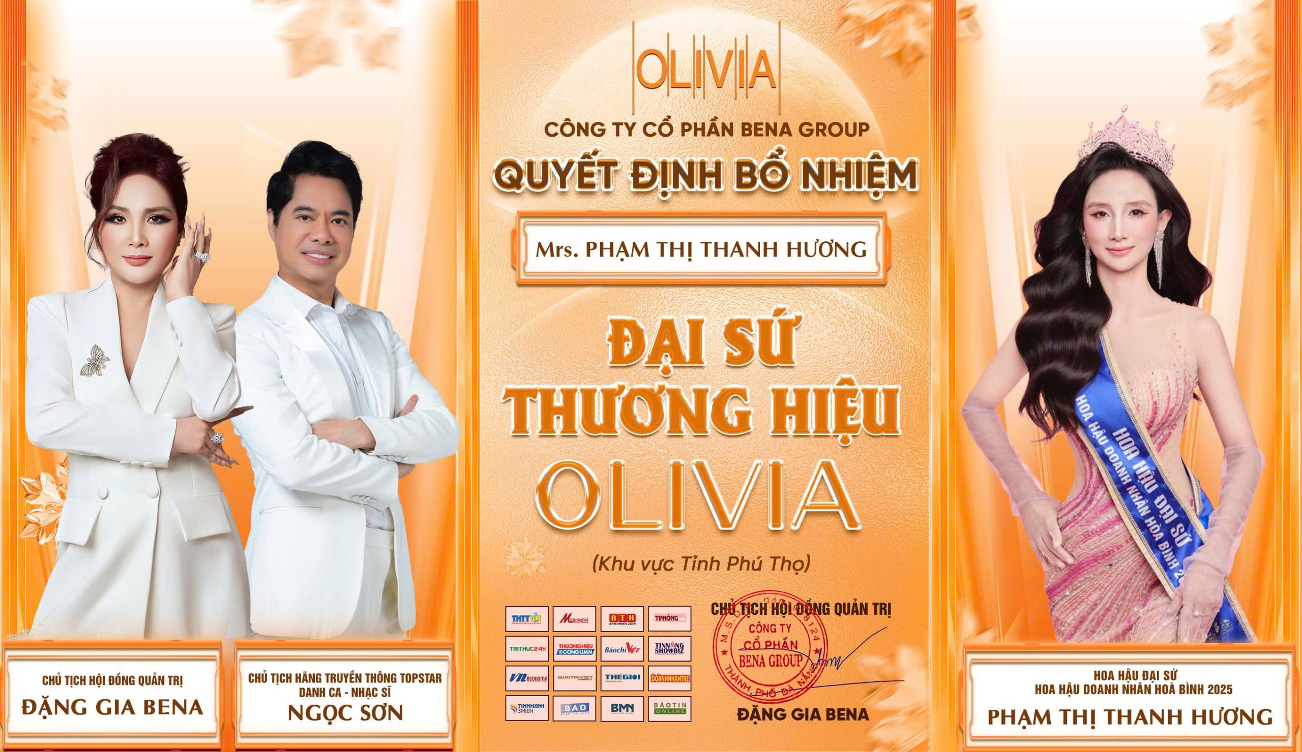 Sau khi đăng quang tại đấu trường nhan sắc Hoa hậu Doanh nhân Hòa bình Việt Nam 2025, Hoa hậu Đại sứ Phạm Thị Thanh Hương tiếp tục khẳng định sức hút khi chính thức trở thành Đại sứ thương hiệu mỹ phẩm Olivia – một trong những thương hiệu uy tín của Tập đoàn Bena Group.