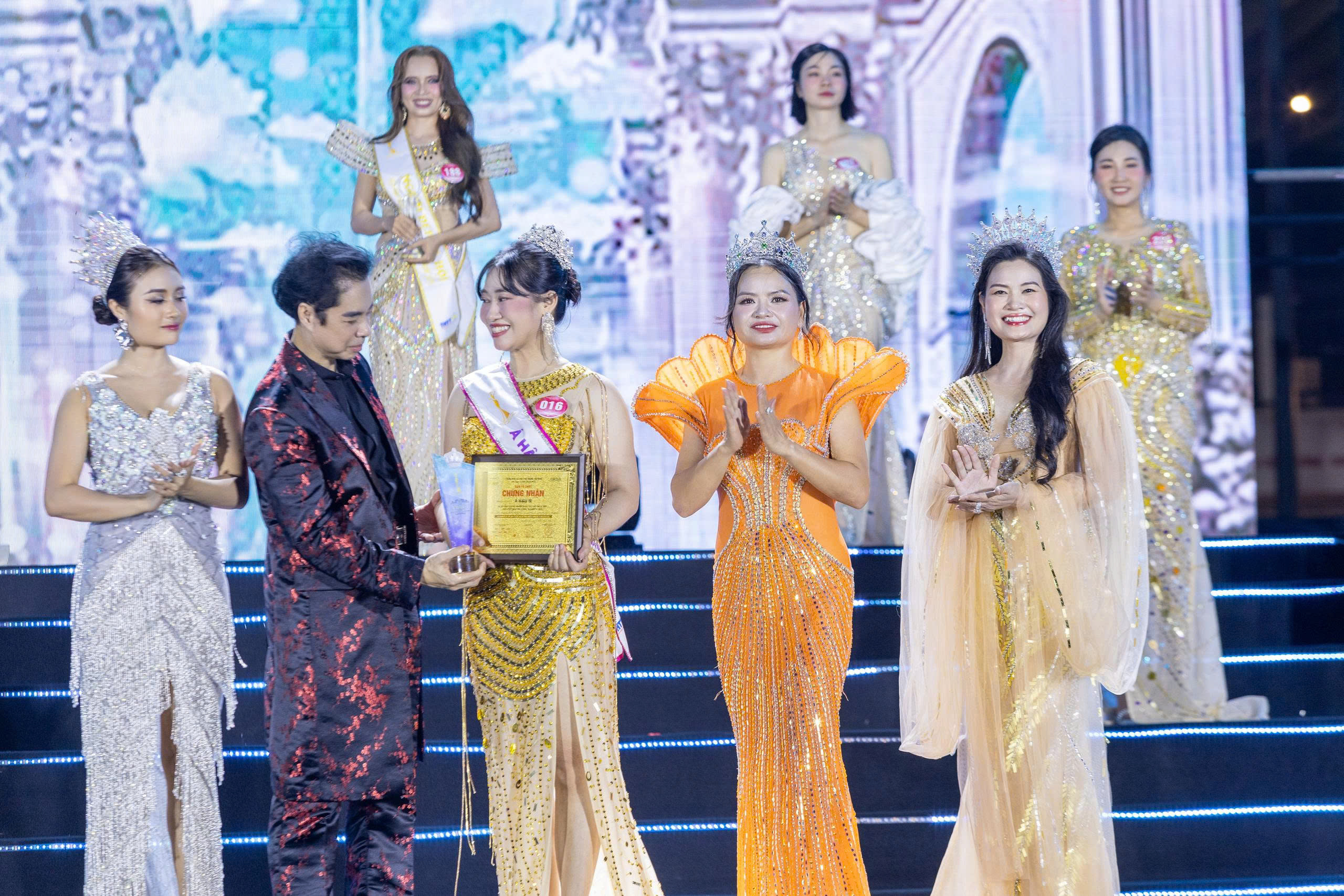 Giây phút Á hậu 3 Vũ Thị Mùi được xướng tên đã trở thành một dấu ấn khó quên khi phần trao giải được thực hiện bởi những gương mặt uy tín, giàu sức ảnh hưởng trong lĩnh vực nhan sắc – nghệ thuật. Trên sân khấu lộng lẫy, sự góp mặt của Trưởng Ban giám khảo – danh ca, nhạc sĩ Ngọc Sơn, Ủy viên Ban tổ chức – Hoa hậu Trí tuệ Võ Thị Thục Uyên, Hoa hậu Đại sứ Lê Thanh Hương cùng Hoa hậu Trí tuệ Phạm Thị Duy đã làm khoảnh khắc đăng quang thêm phần rạng ngời và đáng nhớ. Sự hiện diện của họ không chỉ tôn vinh chiến thắng của tân Á hậu, mà còn khẳng định uy tín, đẳng cấp và sức lan tỏa mạnh mẽ của Hoa hậu Doanh nhân Hương sắc Việt Nam 2025.